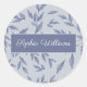 Professionell produktetikett runt klistermärke som representerar ditt varumärke. blommönster för fransk av elegant på mörk blått i en mjuk dammig blå skugga. Skripttext för namn eller brandnamn.