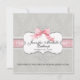 I en subtil, sofistikerad palett av mjuk duvgrå och pastellrosa rosa presenterar detta födelseannonsering eleganta franska kopparstickskalligrafi-stiliga virvlar och rullar i bakgrunden, skriftliga utsmyckningar, en fästingkantad ram och ett vackert handmålat rosa band, med fransk rutschad satinsilkesbård. Allt är gjort från original, handmålad akvarellkonst av Audrey Jeanne Roberts. Resultatet är en utsökt vacker modern och samtida babyensemble. På baksidan finns samma mönster och en ram som visar en plats för din babys foto. Du kan enkelt lägga till din egen bild eller ändra meddelandena.