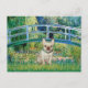 Lily Pond Bridge av Claude Monet, anpassad för att inkludera en liten fransk bulldog. Med varierande nyanser av grönt och blått är denna lugna scen en av Monets mest populära målningar.