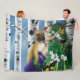 En Dryad som håller en brun Fransk Bulldog i en skog av Birch Träd.
