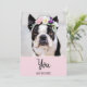 * En söt, färgglad, rolig och fantasifull akvarell FRENCH BULLDOG eller FRENCHIE BULLDOG Fotografi av en FRENCH BULLDOG med BLOMMOR på huvudet.*