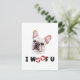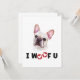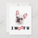 Fransk Bulldog Hund I Woof You är en söt och rolig vattenfärg porträtt av en frenchie hund aveln och en lustig text. Detta är en perfekt gåva till all Fransk Bulldog hundägare, mammor och pappor, eller någon som hyllar denna fransk dogm.