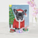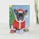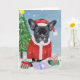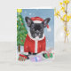 Fransk Bulldog i Snö med Julklappar Kort