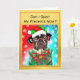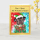 Önska God Jul med denna vintage hund juldesign från Loud and Sassy-butiken. Designen visar en söt fransk bulldogg som bär en ful jultröja, en tomtehatt och en julkranshalsband med en röd rosett och gyllene klockor. Designen inkluderar ett roligt hundpuns, "Kan jag öppna mina presenter nu?", som är allt denna söta lilla rashund vill veta. Den innehåller också traditionella julhälsningar. Texten är helt anpassningsbar och kan enkelt ändras till vad du önskar för en riktigt personlig touch! Perfekt för hundälskare, de som gillar roliga puns och perfekt för djurälskare som älskar att fira den festliga säsongen med sina pälsbarn!