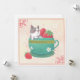 En söt illustration av en Fransk bulldog i kopp med jordgubbar