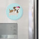 Fransk Bulldog på Blue and White Gingham Design Magnet