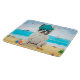 Söt hund som sitter på stranden är en perfekt presentidé för någon som älskar denna hundras.