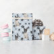 En bild av en bulldog för svart och vit Fransk är en funktion i mönster på tillfällens pappra presenter. Hund sitter mitt i mönster på svart tass avtryck och vita ben och upprepas med silver blå bakgrund.