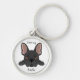 Fransk bulldog rund silverfärgad nyckelring