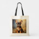 Fransk Bulldog black and tan puppy sunset porträtt i trädgård
