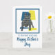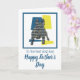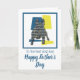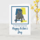 Fransk Bulldog siluett i gult, blått och svart modernt rutmönster. ‘Till den bästa hundpappan’ och ‘Glad Fars dag’ på utsidan och älskligt meddelande på insidan kan ändras till vad du vill. Bra sätt att fira en djurägares Fars dag.