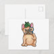 Fransk bulldogg som detektiv med förstoringsglas vykort