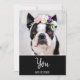 * En söt, färgglad, rolig och fantasifull akvarell FRENCH BULLDOG eller FRENCHIE BULLDOG Foto av en FRENCH BULLDOG med BLOMMOR på huvudet.