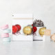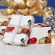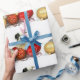 Fransk bulldogghund för jul som slår in papper presentpapper