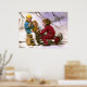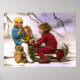 Fransk flickor leker med leksak på scenen snö, vintage snö.