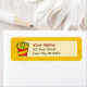 Tecknad illustration av liten förpackning med fransk fries. Skräckmatets dispositionsikoner i gultens mönster-bakgrund. Anpassningsbar.