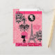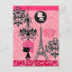Fransk Girly Eiffel Torn, Puppy & Damask Elegant Vykort