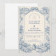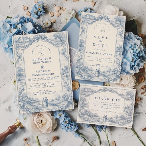 En förfinad blå toile-hönsdesign inspirerad av klassiska franska lantliga gravyrer. Ömtålig pastoralscen, välskötta trädgårdar, stenvägar och blommande blommor ramar in den nedre delen i invecklad enfärgad blå linjearbeten. Den mjuka elfenbensfärgade himmelstvätten håller det övre området ljust och balanserat och skapar en tidlös och sofistikerad komposition. Perfekt för en romantisk herrgård, trädgård eller europeiskt inspirerad bröllopsfest.