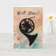 Den här gratulationstexten, som är djärv och vackert uttrycksfull, visar den distinkta formen av en Fransk horn i svart silhuett, som ställs mot en svepande vattenfärgbakgrund i orange och teal. Kurvmusiker linjer och anteckningar tyder på rik, resonanstomter i en hornprestation. "Bra gjort!" visas i ett handskript i snyggten och skapar detta som ett minnesvärt sätt att erkänna en student eller en utövande konstnär efter ett skäl, konsert eller solo.