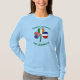 Personlig långärmad kvinnors T-shirt har flaggorna av Frankrike, Irland och Förenta staterna, eller USA, i en skamrock. En flagga i varje löv. Över schampullen på mörk grönt, keltiska stil, är det cirkulära brev ord TRE KULTURER. Nedan finns ord ONE YOURNAME i liknande text. Ställe ditt namn på rätt plats för att anpassa skjortan. Om du behöver en gåva lägger du bara till någon annans namn.