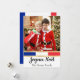 Detta anpassade julkort har ett franskt jul tema. Ett exempel foto är tryckt i den övre delen som du kan anpassa för att inkludera ditt eget foto eller bild som du väljer. En fransk flagga är placerad under bilden, följt av en exempel Joyeux Noël julhälsning. Ett exempel på efternamn är tryckt under flaggan av Frankrike. Du kan anpassa kortet för att inkludera ditt eget namn eller annan text.