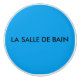Ord för badrum i Fransk, i svart brev på en turkotisk solid bakgrund.
