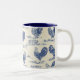 Den franska designen för mönster för muggen för koppen för kaffe för landblåtttuppar är en av min mormor gammala tablecloths!