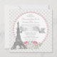 Paris bröllop inbjudan med vackra rosa pärlor och antika rosa och vita rosor och Eiffeltornet på en elegant damastbakgrund. Du kan enkelt anpassa dessa vackra franska lanthustru Paris bröllopsinbjudningar för ditt evenemang genom att helt enkelt lägga till dina detaljer i den teckensnittsstil och formulering du väljer. Detta är en tryckt design utan riktiga pärlor.