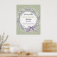 "Fransk Lavender Blommigt Utandning med Sage Grönt Foliage Möhippa Luncheon Välkommen Poster." Elegant Script-handskriftsbilder i guld glitter ser ut tillsammans med din brids namn och ett andra meddelande fält för datum eller annan information. Vattenfärgsgrafik med sage grönt-bakgrund målades från hela livet på en vacker Lavender-gård nära Audrey Jeannees hem. Copyright.