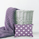 En accentkudde med en polkudde mönster av vita mini-hjärtan på Franskens lilak-bakgrund.