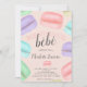 Bienvenue Bebe! En fransk kalldusch med kalligrafi av modern elegant, med handmålade pastellmakaroner efterrätt med guld och ro guld glitter i rosa, lavender, grönt, teal och gult. Alla inslag är rörliga till önskad position. En söt macaroons stack på baksidan!