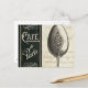 ©Pela studio/vild Apple. En avbilda av en sked med en meny på sidan. Det finns ord som är skriftlig på den solbrända kulöra bakgrunden bak skeden.