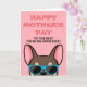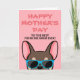 Fransmän, vad är ett bättre sätt att visa din mamma hur mycket du älskar henne på mors dag med ett personligt kort bara från dig! Designen har en serieillustration av en brun och beige fransk bulldog med blå solglasögon och texten " Glad mors dag till den bästa franska mamman någonsin!" skriven på framsidan. Insidan av kortet lyder "Till mamma, jag älskar dig mer än godsaker" men kan ändras till den text du väljer. Olika färgversioner av fransk bulldog finns också tillgängliga.