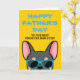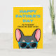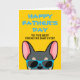Fransmän, vad är ett bättre sätt att visa Pappa hur mycket du älskar honom på faderns dag med ett personligt kort, bara från dig! Designen har en illustration i tecknad stil av en blåbrun färgad fransk bulldogg som bär blå solglasögon med texten " Glad fadersdag till den bästa franske pappan någonsin!" skriven på framsidan. Inuti kortet står det "Till Pappa, jag älskar dig mer än godsaker" men kan ändras till den text du önskar.