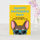 Fransmän, vad är ett bättre sätt att visa Pappa hur mycket du älskar honom på faderns dag med ett personligt kort, bara från dig! Designen har en illustration i seriestil av en brun, solbränd fransk bulldogg som bär blå solglasögon med texten " Glad fadersdag till den bästa franska pappa någonsin!" skriven på framsidan. Korthälsidan har texten "Till pappa, jag älskar dig mer än godsaker" men kan ändras till den text du önskar.