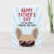 Frenchies, detta franska bulldog pappadagskort kommer att göra din pappas dag. Designen har en illustration av en cool ljus fawnfärgad fransk bulldog som bär röda solglasögon med texten "Grattis Pappas dag till den bästa Frenchie Pappan någonsin!" skriven på framsidan. Insidan av kortet lyder "Till Pappa, jag älskar dig mer än godsaker" men kan ändras till den text du väljer.