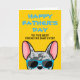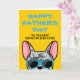 Fransmän, vad är ett bättre sätt att visa Pappa hur mycket du älskar honom på faderns dag med ett personligt kort, bara från dig! Designen har en illustration i tecknad stil av en blå merle-färgad fransk bulldog som bär blå solglasögon med texten " Glad fadersdag till den bästa franska pappa någonsin!" skriven på framsidan. Korthälsidan har texten "Till Pappa, jag älskar dig mer än godsaker" men kan ändras till den text du önskar.