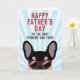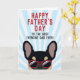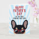Frenchies, detta fadersdagskort med fransk bulldogg kommer att göra din pappas dag. Designen visar en illustration av en cool svart och tan färgad fransk bulldogg som bär röda solglasögon med texten "Grattis på fadersdagen till den bästa Frenchie-pappan någonsin!" skriven på framsidan. Insidan av kortet lyder "Till pappa, jag älskar dig mer än godsaker" men kan ändras till den text du väljer.