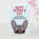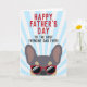 Franskies, detta franska bulldog kort för Fars dag kommer att göra din Pappas dag. Designen har en illustration av en cool lila och tan färgad fransk bulldog som bär röda solglasögon med texten "Grattis Pappas dag till den bästa franska Pappa någonsin!" skriven på framsidan. Insidan av kortet lyder "Till Pappa, jag älskar dig mer än godsaker" men kan ändras till den text du väljer.