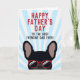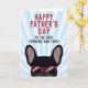 Franskies, detta franska bulldoggs fadersdags-kort kommer att göra din pappas dag. Designen visar en illustration av en cool svartfransk bulldog som bär röda solglasögon med texten "Grattis på fadersdagen till den bästa franske pappan någonsin!" skriven på framsidan. Insidan av kortet lyder "Till pappa, jag älskar dig mer än godsaker" men kan ändras till den text du önskar.