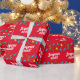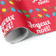 En festlig julklapp papper med julklapp ljus och ett God jul önskemål på Fransk språk. Det står "Joyeux noël!" i en vacker kursiv text.