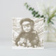 Vintage foto av en Fransk flicka som innehar vykort ... av sig själv som innehar vykort. Hon är i vinter med sin mysiga bäste och jackar mot det fallande snö och holly. Redigerbar text i en typografi för en vintage: Text lyder "All of our best önskemål for 2021" och "Holiday Greetings".
