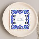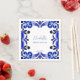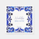 Blå Majolica mexikanska Talavera spanska franska Medelhavsplatts tryckta servetter mall. Moderna akvarell platts blå färger med modern handskriven teckensnitt personliga servetter anpassad duk