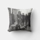 Luta dig tillbaka med denna ikoniska kudd med ett vintage svartvitt foto av en hundpromenerare med en grupp franska bulldoggar i staden.