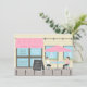 En elegant, stilren, trendig och genomarbetad inbjudan som använder en fransk café-miljö med två flickor i fashionabla kläder som njuter av te i caféets uteservering under ett paraply. På fönsterpanelerna syns den välbekanta Eiffeltornet-ikonen. Personifiera med dina festdetaljer på de olika utrymmena som finns tillgängliga på dörren och svarta tavlan. Perfekt för födelsedagsflickor i åldrarna tween, tonåringar och uppåt!