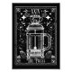Grunge tarot card design för kaffe älskare! Fransken trycker på. Vita och svarta illustrationer med en Fransk presskaffe, kaffebönor, kaffe kopp och skelett händer.