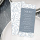 Elegantens klassiska Fransk inspirerade till dammiga blåa blommönster-menykort från bröllop.