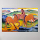 Hästar som betar på betesmark enligt Franz Marc målning.