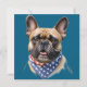 Französische Bulldogge mit Halstuch Amerika. Die französische Bulldogge als American Football Spieler und ist ein kleiner Molosser ist sehr agil, sportlich und aufgeweckt. Er ist ein Clown unter den Hunderassen und äußerst liebenswert. Der Bully ist sehr kinderlieb und ein treuer Familienhund. Durch seine Größe ist er auch in der Wohnung gut zu halten, selbstverständlich liebt er seinen regelmäßigen Spaziergang.