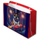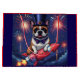 hübsche französische Bulldogge feiert Sylvester und wünscht ein Frohes Neues Jahr. Das bunte Feuerwerk in der Nacht wirkt sehr festlich.Der lustige kleine Hund hat sich schön gekleidet mit Fliege und bunten Zylinder für diesen traumhaften Abend. Der niedliche Frenchie sitzt auf einer Rakete und startet ins neue Jahr. Jetzt wird gefeiert und um 12 Uhr Mitternacht wird mit Sekt angestoßen. Traumhafte Illustrationen und ein schönes Geschenk für jeden Hundebesitzer.